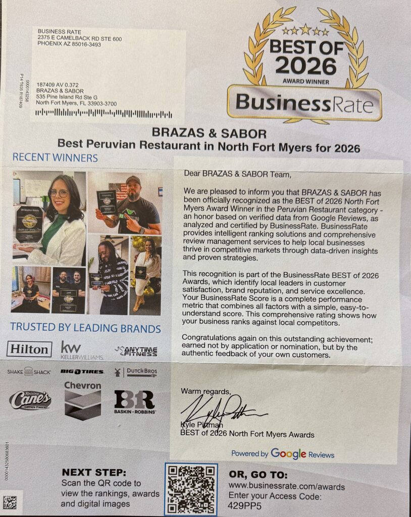 Founded by culinary enthusiasts who share a love for great food, Brazas & Sabor is more than just a restaurant; it’s a destination for chicken aficionados. From our humble beginnings, we have grown into a beloved local spot, known for our dedication to quality, taste, and exceptional service.